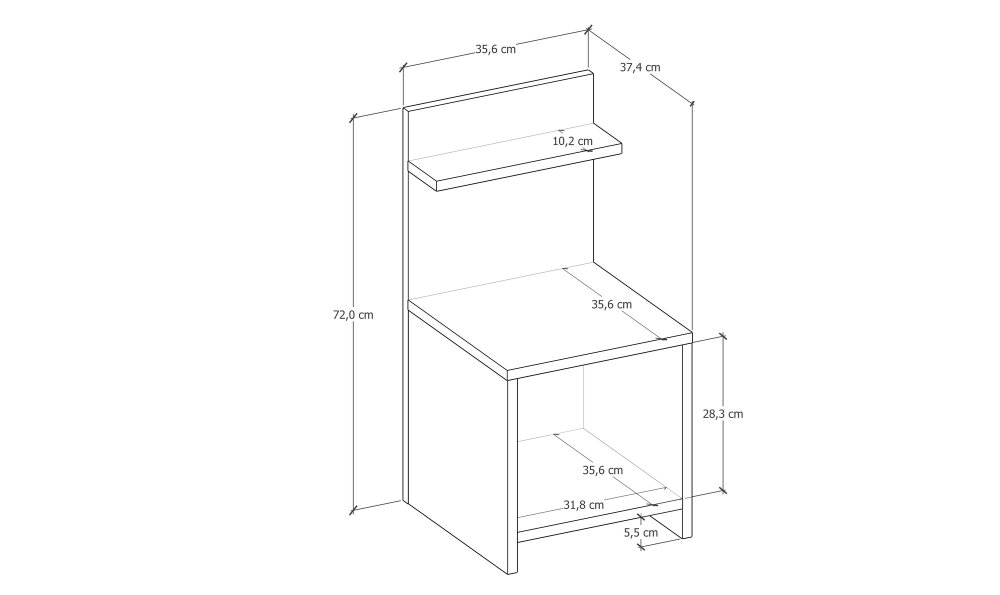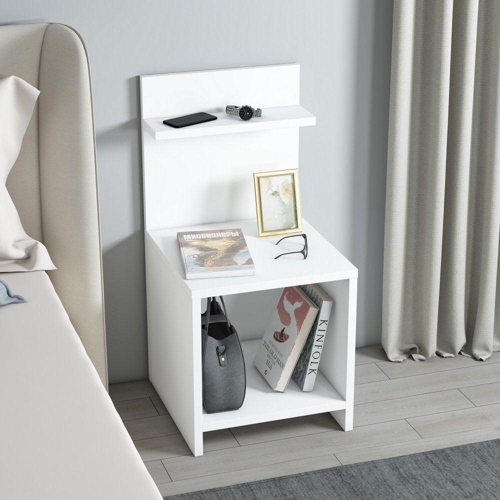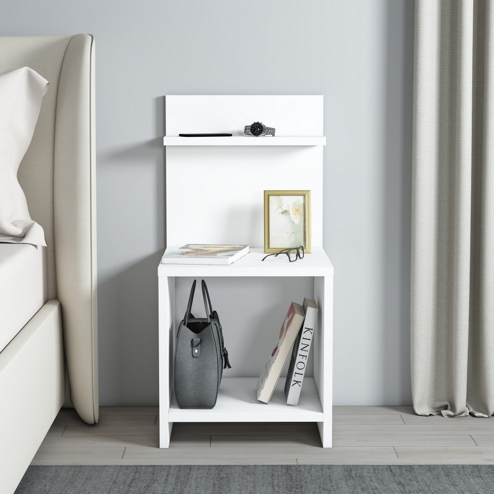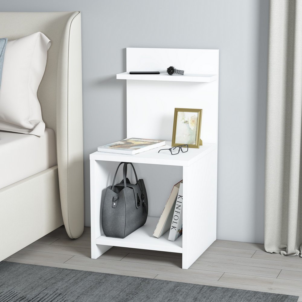 Specifikacija | Noćni stočić Materijal: 100% Iverica Dimenzije: Širina: 35.6 cm Visina: 72 cm Dubina: 37.4 cm Napomena: Može se fiksirati za zid |