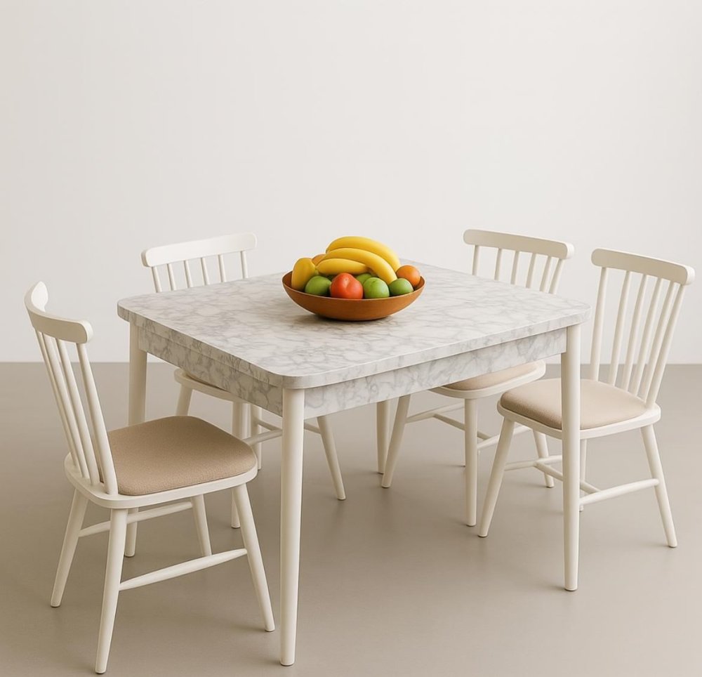 Specifikacija | Produžni set trpezarijskih stolova i stolica (5 komada) Lidya White 100% Bukovo drvo Vrh tabele: 100% MDF (otporan na ogrebotine) Tkanina: 100% Poliester širina Bouclette tekstura Sto: Širina: 130 cm Visina: 75 cm Dubina: 80 cm Otvoreni sto: Širina: 160 cm Visina: 75 cm Dubina: 80 cm Stolica: Širina: 44 cm Visina: 92 cm Dubina: 44 cm (4 komada) |