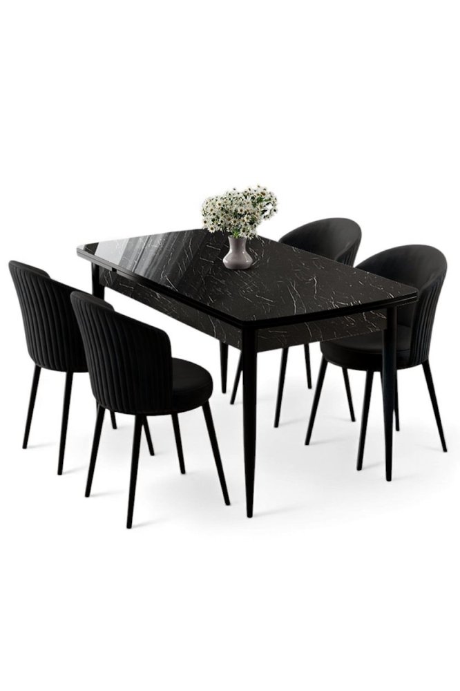 | Specifikacija | Rasklopivi trpezarijski sto i stolice (5 delova) Asfel Black Marble Black 100% MDF Metalne nogare Okvir stolice: METAL Materijal: Mekana tkanina Trpezarijski sto: Širina: 130 cm Visina: 78 cm Dubina: 77 cm Otvoreni trpezarijski sto: Širina: 174 cm Visina: 78 cm Dubina: 77 cm Stolica: Širina: 45 cm Visina: 87 cm Dubina: 41 cm (4 dela) Visina sedišta: 49 cm 22 DNS pena za leđa / 28 DNS pena za sedenje Broj pakovanja: 3 138 x 86 x 20 cm / 31 kg (1 komad) 77 x 58 x 49 cm / 16 kg (1 komad) 63 x 49 x 45 cm / 8 kg (1 komad) |