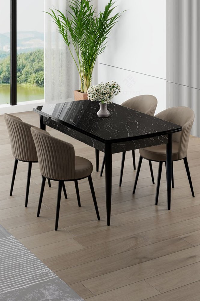 | Specifikacija | Rasklopivi trpezarijski sto i stolice (5 delova) Asfel Black Marble Cappuccino 100% MDF Metalne nogare Okvir stolice: METAL Materijal: Mekana tkanina Trpezarijski sto: Širina: 130 cm Visina: 78 cm Dubina: 77 cm Otvoreni trpezarijski sto: Širina: 174 cm Visina: 78 cm Dubina: 77 cm Stolica: Širina: 45 cm Visina: 87 cm Dubina: 41 cm (4 dela) Visina sedišta: 49 cm 22 DNS pena za leđa / 28 DNS pena za sedenje Broj pakovanja: 3 138 x 86 x 20 cm / 31 kg (1 komad) 77 x 58 x 49 cm / 16 kg (1 komad) 63 x 49 x 45 cm / 8 kg (1 komad) |