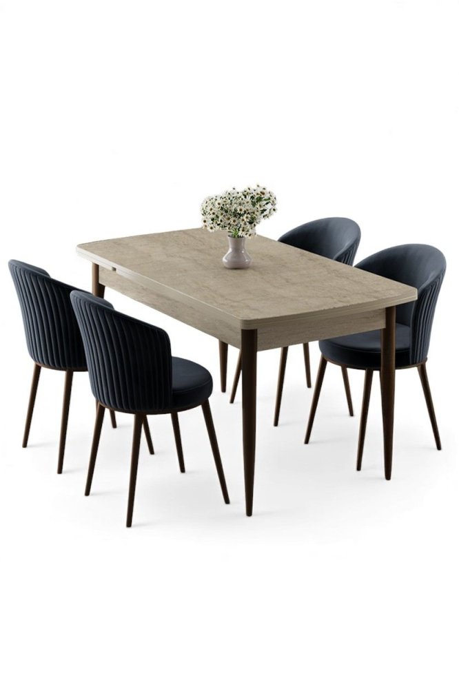 | Specifikacija | Rasklopivi trpezarijski sto i stolice (5 delova) Asfel Travertine Anthracite 100% MDF Metalne nogare Okvir stolice: METAL Materijal: Mekana tkanina Trpezarijski sto: Širina: 130 cm Visina: 78 cm Dubina: 77 cm Otvoreni trpezarijski sto: Širina: 174 cm Visina: 78 cm Dubina: 77 cm Stolica: Širina: 45 cm Visina: 87 cm Dubina: 41 cm (4 dela) Visina sedišta: 49 cm 22 DNS pena za leđa / 28 DNS pena za sedenje Broj pakovanja: 3 138 x 86 x 20 cm / 31 kg (1 komad) 77 x 58 x 49 cm / 16 kg (1 komad) 63 x 49 x 45 cm / 8 kg (1 komad) |