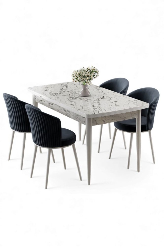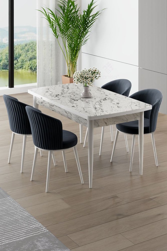 | Specifikacija | Rasklopivi trpezarijski sto i stolice (5 delova) Asfel White Marble Anthracite 100% MDF Metalne nogare Okvir stolice: METAL Materijal: Mekana tkanina Trpezarijski sto: Širina: 130 cm Visina: 78 cm Dubina: 77 cm Otvoreni trpezarijski sto: Širina: 174 cm Visina: 78 cm Dubina: 77 cm Stolica: Širina: 45 cm Visina: 87 cm Dubina: 41 cm (4 dela) Visina sedišta: 49 cm 22 DNS pena za leđa / 28 DNS pena za sedenje Broj pakovanja: 3 138 x 86 x 20 cm / 31 kg (1 komad) 77 x 58 x 49 cm / 16 kg (1 komad) 63 x 49 x 45 cm / 8 kg (1 komad) |