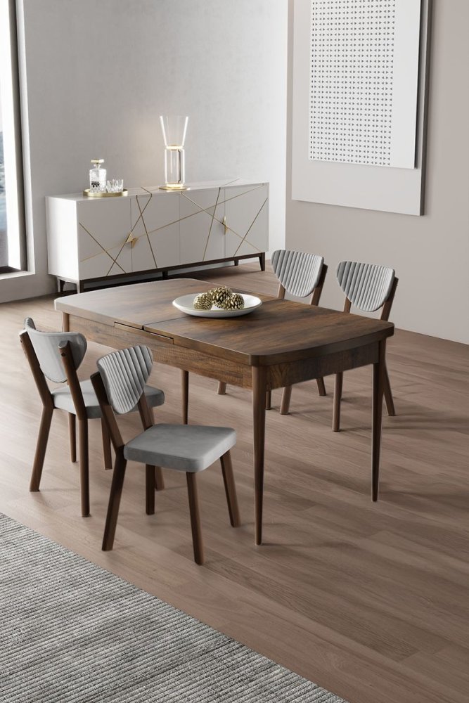 | Specifikacija | Rasklopivi trpezarijski sto i stolice (5 delova) Exve Baroque Grey 100% Iverica sa melaminskim premazom Metalne nogare Okvir stolice: Šperploča / Metal Materijal: Mekana tkanina Trpezarijski sto: Širina: 132 cm Visina: 78 cm Dubina: 80 cm (1 komad) Otvoreni trpezarijski sto: Širina: 170 cm Visina: 78 cm Dubina: 80 cm Stolica: Širina: 45 cm Visina: 86 cm Dubina: 46 cm (4 komada) Visina sedišta: 48 cm 22 DNS pena za leđa / 28 DNS pena za sedenje Broj pakovanja: 2 85 x 136 x 20 cm / 30,42 kg (1 komad) 101 x 76 x 26 cm / 30 kg (1 komad) |