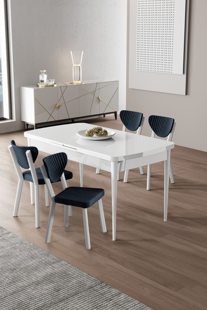 | Specifikacija | Rasklopivi trpezarijski sto i stolice (5 delova) Exve White Anthracite 100% Iverica sa melaminskim premazom Metalne nogare Okvir stolice: Šperploča / Metal Materijal: Mekana tkanina Trpezarijski sto: Širina: 132 cm Visina: 78 cm Dubina: 80 cm (1 komad) Otvoreni trpezarijski sto: Širina: 170 cm Visina: 78 cm Dubina: 80 cm Stolica: Širina: 45 cm Visina: 86 cm Dubina: 46 cm (4 komada) Visina sedišta: 48 cm 22 DNS pena za leđa / 28 DNS pena za sedenje Broj pakovanja: 2 85 x 136 x 20 cm / 30,42 kg (1 komad) 101 x 76 x 26 cm / 30 kg (1 komad) |