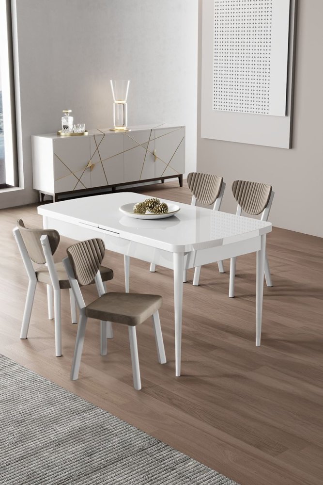 | Specifikacija | Rasklopivi trpezarijski sto i stolice (5 delova) Exve White Cappuccino 100% Iverica sa melaminskim premazom Metalne nogare Okvir stolice: Šperploča / Metal Materijal: Mekama tkanina Trpezarijski sto: Širina: 132 cm Visina: 78 cm Dubina: 80 cm (1 komad) Otvoreni trpezarijski sto: Širina: 170 cm Visina: 78 cm Dubina: 80 cm Stolica: Širina: 45 cm Visina: 86 cm Dubina: 46 cm (4 komada) Visina sedišta: 48 cm 22 DNS pena za leđa / 28 DNS pena za sedenje Broj pakovanja: 2 85 x 136 x 20 cm / 30,42 kg (1 komad) 101 x 76 x 26 cm / 30 kg (1 komad) |