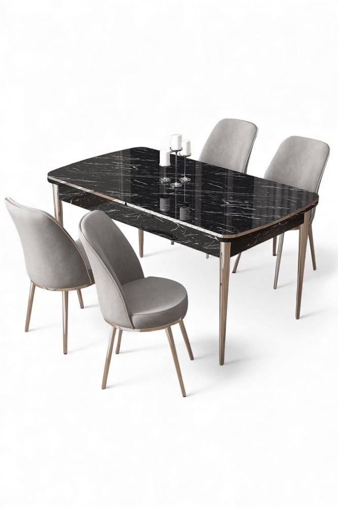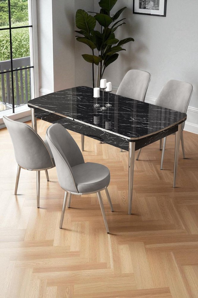 | Specifikacija | Rasklopivi trpezarijski sto i stolice (5 delova) Nira Black Marble Chrome Grey 100% MDF Metalne nogare Okvir stolice: METAL Materijal: Mekana tkanina Trpezarijski sto: Širina: 114 cm Visina: 78 cm Dubina: 78 cm (1 komad) Otvoreni trpezarijski sto: Širina: 144 cm Visina: 78 cm Dubina: 70 cm Stolica: Širina: 45 cm Visina: 91 cm Dubina: 42 cm (4 komada) Visina sedišta: 47 cm 22 DNS pena za leđa / 28 DNS pena za sedenje Broj pakovanja: 3 118,5 x 77 x 20 cm / 25,76 kg (1 komad) 77 x 58 x 49 cm / 16 kg (1 komad) 63 x 49 x 45 cm / 8 kg (1 komad) |