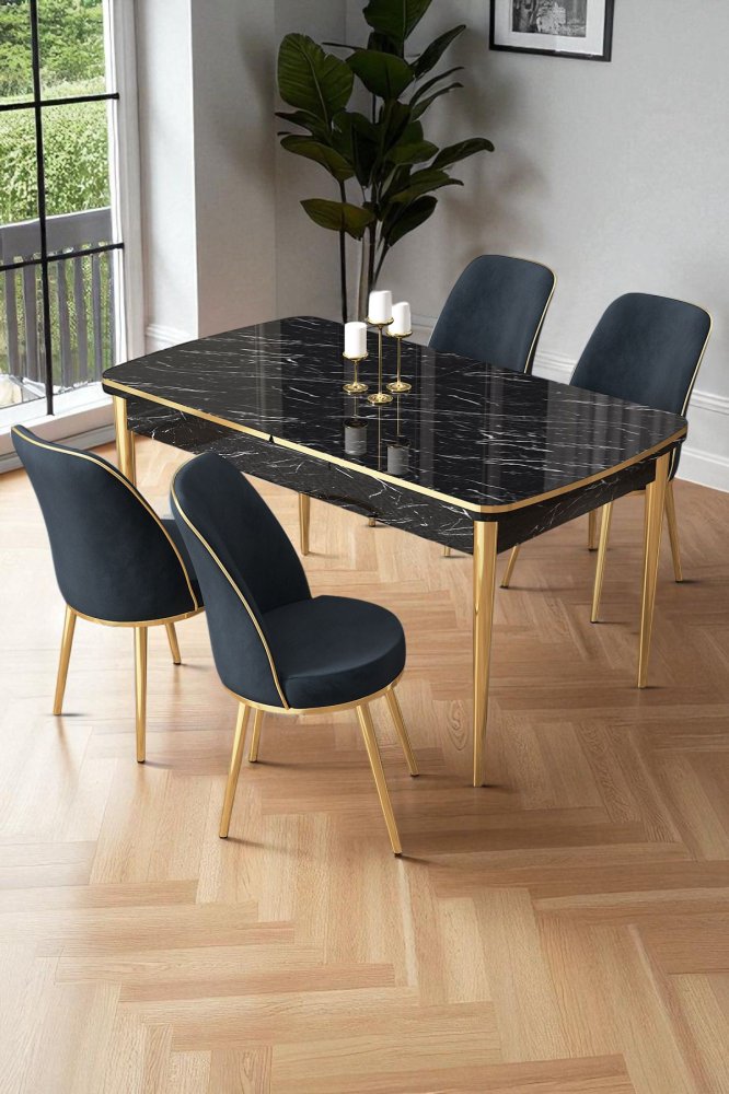| Specifikacija | Rasklopivi trpezarijski sto i stolice (5 delova) Nira Black Marble Gold Anthracite 100% MDF Metalne nogare Okvir stolice: METAL Materijal: Mekana tkanina Trpezarijski sto: Širina: 114 cm Visina: 78 cm Dubina: 78 cm (1 komad) Otvoreni trpezarijski sto: Širina: 144 cm Visina: 78 cm Dubina: 70 cm Stolica: Širina: 45 cm Visina: 91 cm Dubina: 42 cm (4 komada) Visina sedišta: 47 cm 22 DNS pena za leđa / 28 DNS pena za sedenje Broj pakovanja: 3 118,5 x 77 x 20 cm / 25,76 kg (1 komad) 77 x 58 x 49 cm / 16 kg (1 komad) 63 x 49 x 45 cm / 8 kg (1 komad) |