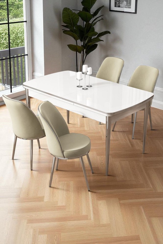 | Specifikacija | Rasklopivi trpezarijski sto i stolice (5 delova) Nira White Chrome Cream 100% MDF Metalne nogare Okvir stolice: METAL Materijal: Mekana tkanina Trpezarijski sto: Širina: 114 cm Visina: 78 cm Dubina: 78 cm (1 komad) Otvoreni trpezarijski sto: Širina: 144 cm Visina: 78 cm Dubina: 70 cm Stolica: Širina: 45 cm Visina: 91 cm Dubina: 42 cm (4 komada) Visina sedišta: 47 cm 22 DNS pena za leđa / 28 DNS pena za sedenje Broj pakovanja: 3 118,5 x 77 x 20 cm / 25,76 kg (1 komad) 77 x 58 x 49 cm / 16 kg (1 komad) 63 x 49 x 45 cm / 8 kg (1 komad) |