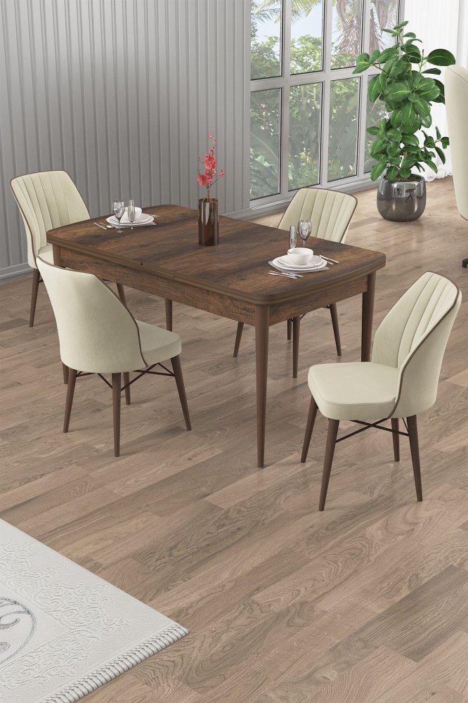 | Specifikacija | Rasklopivi trpezarijski sto i stolice (5 delova) Uzi Baroque Cream 100% Iverica sa melaminskim premazom Drvene nogare Okvir stolice: Metal Materijal: Mekana tkanina Trpezarijski sto: Širina: 132 cm Visina: 78 cm Dubina: 80 cm (1 komad) Otvoreni trpezarijski sto: Širina: 170 cm Visina: 78 cm Dubina: 80 cm Stolica: Širina: 45 cm Visina: 93 cm Dubina: 42 cm (4 komada) Visina sedišta: 48 cm 22 DNS pena za leđa / 28 DNS pena za sedenje Broj pakovanja: 3 85 x 136 x 20 cm / 31,18 kg (1 komad) 77 x 58 x 49 cm / 17 kg (1 komad) 36 x 37 x 45 cm / 8 kg (1 komad) |