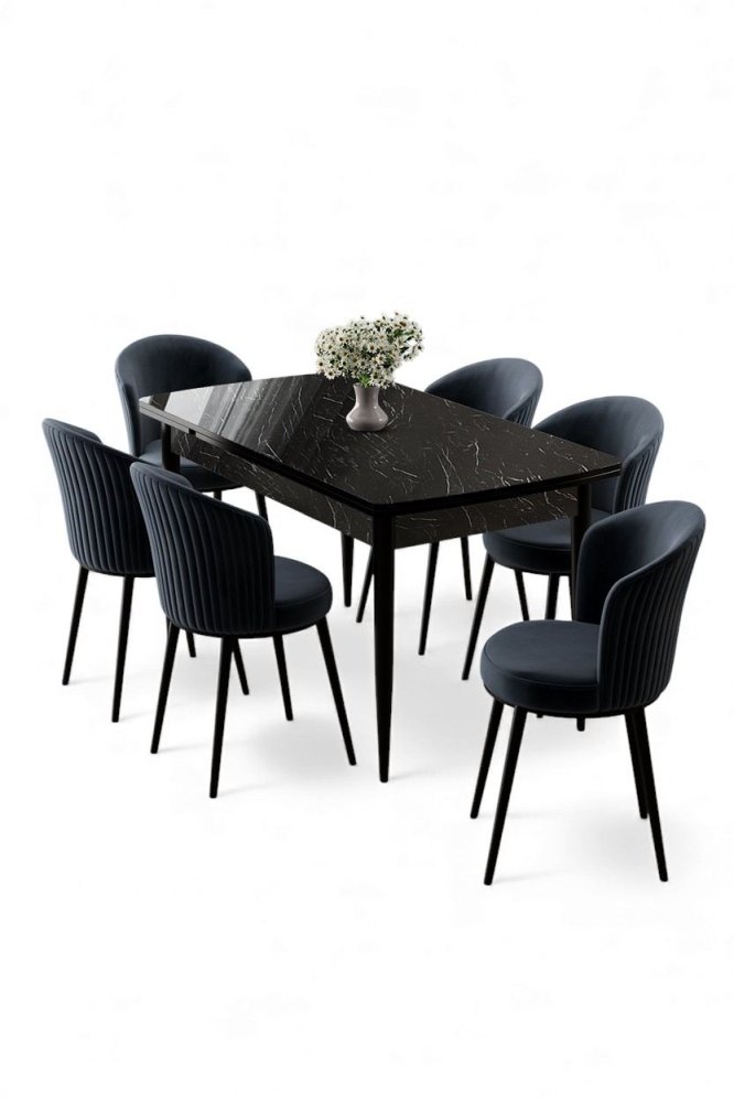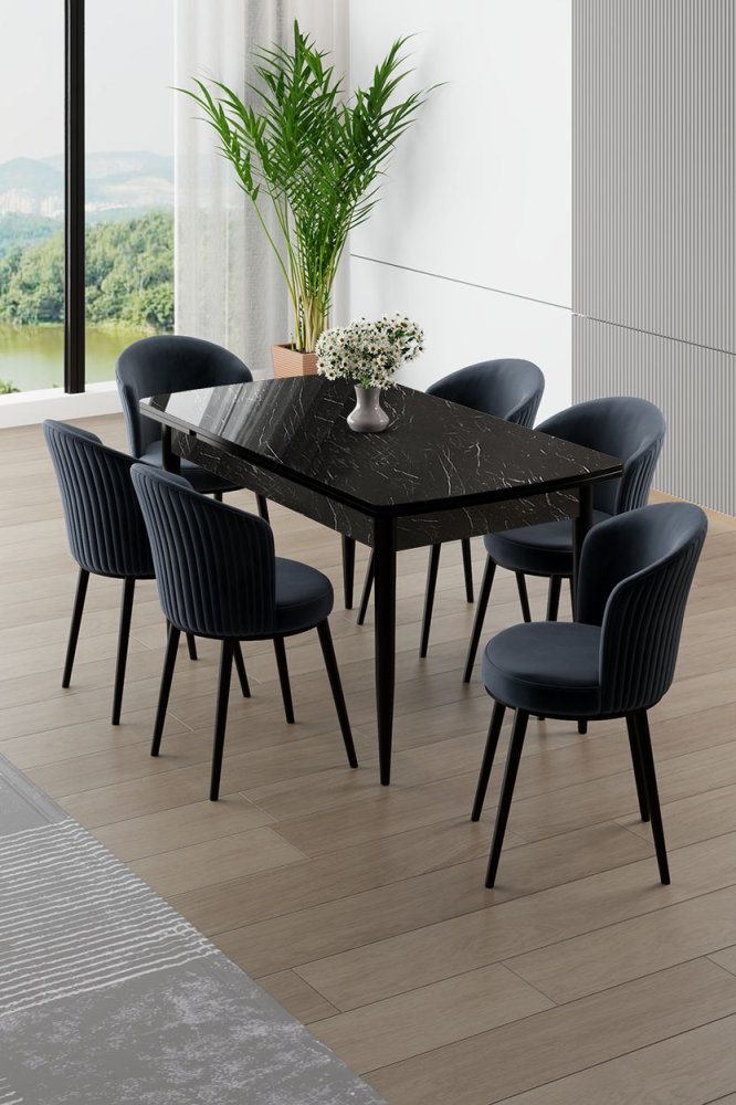 | Specifikacija | Rasklopivi trpezarijski sto i stolice (7 delova) Asfel Black Marble Anthracite 100% MDF Metalne nogare Ram stolice: METAL Materijal: Mekana tkanina Trpezarijski sto: Širina: 130 cm Visina: 78 cm Dubina: 77 cm Otvoreni trpezarijski sto: Širina: 174 cm Visina: 78 cm Dubina: 77 cm Stolica: Širina: 45 cm Visina: 87 cm Dubina: 41 cm (6 komada) Visina sedišta: 49 cm 22 DNS pena za leđa / 28 DNS pena za sedenje Broj pakovanja: 3 138 x 86 x 20 cm / 31 kg (1 komad) 85 x 59 x 50 cm / 24 kg (1 komad) 62 x 48 x 56 cm / 12 kg (1 komad) |