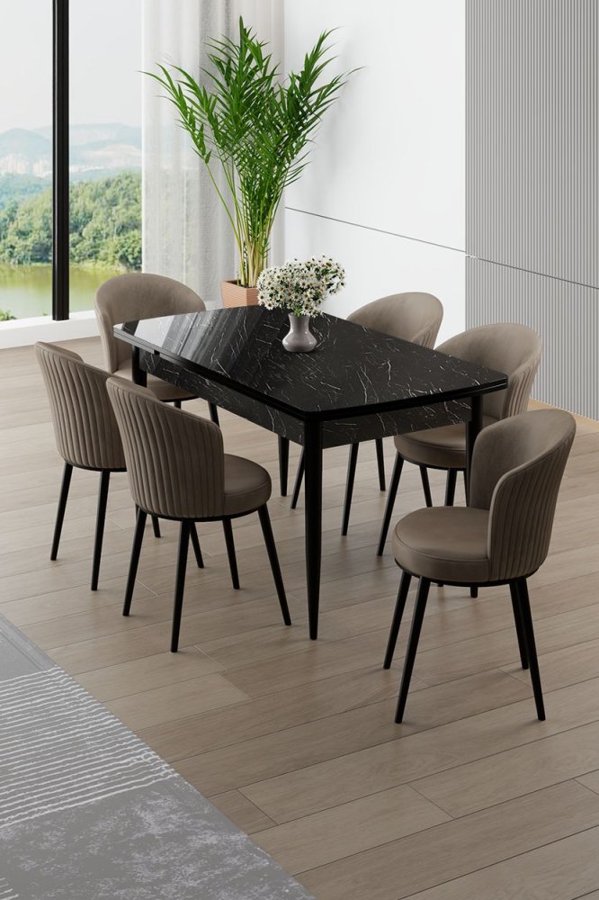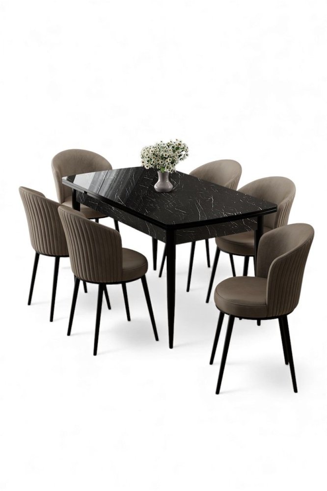 | Specifikacija | Rasklopivi trpezarijski sto i stolice (7 delova) Asfel Black Marble Cappuccino 100% MDF Metalne nogare Ram stolice: METAL Materijal: Mekana tkanina Trpezarijski sto: Širina: 130 cm Visina: 78 cm Dubina: 77 cm Otvoreni trpezarijski sto: Širina: 174 cm Visina: 78 cm Dubina: 77 cm Stolica: Širina: 45 cm Visina: 87 cm Dubina: 41 cm (6 komada) Visina sedišta: 49 cm 22 DNS pena za leđa / 28 DNS pena za sedenje Broj pakovanja: 3 138 x 86 x 20 cm / 31 kg (1 komad) 85 x 59 x 50 cm / 24 kg (1 komad) 62 x 48 x 56 cm / 12 kg (1 komad) |