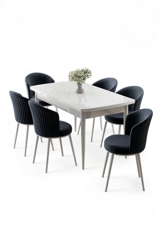 | Specifikacija | Rasklopivi trpezarijski sto i stolice (7 delova) Asfel White Anthracite 100% MDF Metalne nogare Ram stolice: METAL Materijal: Mekana tkanina Trpezarijski sto: Širina: 130 cm Visina: 78 cm Dubina: 77 cm Otvoreni trpezarijski sto: Širina: 174 cm Visina: 78 cm Dubina: 77 cm Stolica: Širina: 45 cm Visina: 87 cm Dubina: 41 cm (6 komada) Visina sedišta: 49 cm 22 DNS pena za leđa / 28 DNS pena za sedenje Broj pakovanja: 3 138 x 86 x 20 cm / 31 kg (1 komad) 85 x 59 x 50 cm / 24 kg (1 komad) 62 x 48 x 56 cm / 12 kg (1 komad) |
