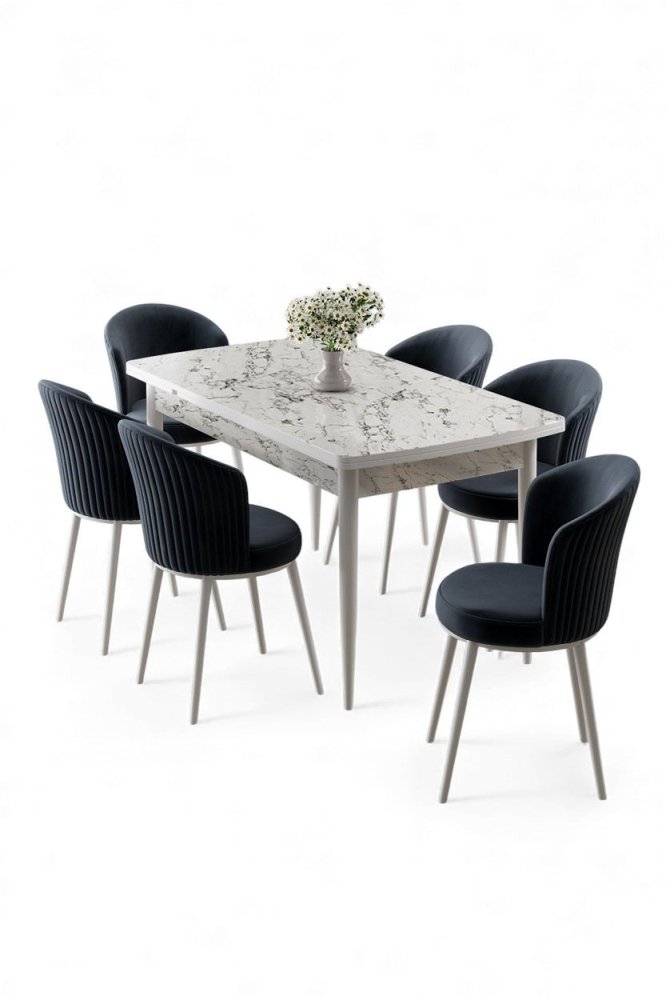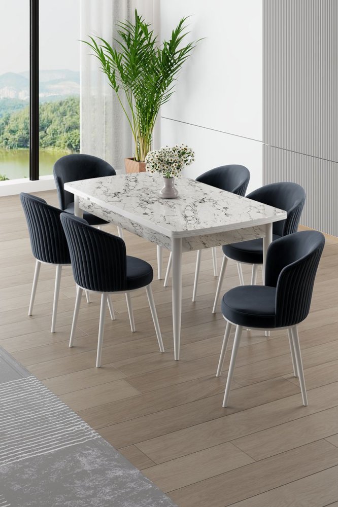 | Specifikacija | Rasklopivi trpezarijski sto i stolice (7 delova) Asfel White Marble Anthracite 100% MDF Metalne nogare Ram stolice: METAL Materijal: Mekana tkanina Trpezarijski sto: Širina: 130 cm Visina: 78 cm Dubina: 77 cm Otvoreni trpezarijski sto: Širina: 174 cm Visina: 78 cm Dubina: 77 cm Stolica: Širina: 45 cm Visina: 87 cm Dubina: 41 cm (6 komada) Visina sedišta: 49 cm 22 DNS pena za leđa / 28 DNS pena za sedenje Broj pakovanja: 3 138 x 86 x 20 cm / 31 kg (1 komad) 85 x 59 x 50 cm / 24 kg (1 komad) 62 x 48 x 56 cm / 12 kg (1 komad) |