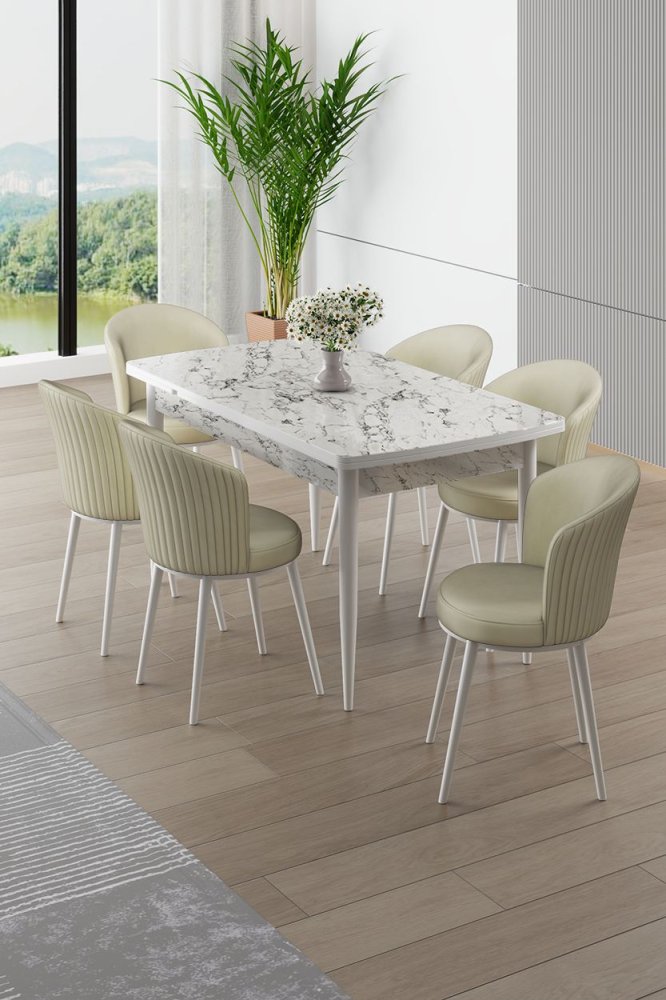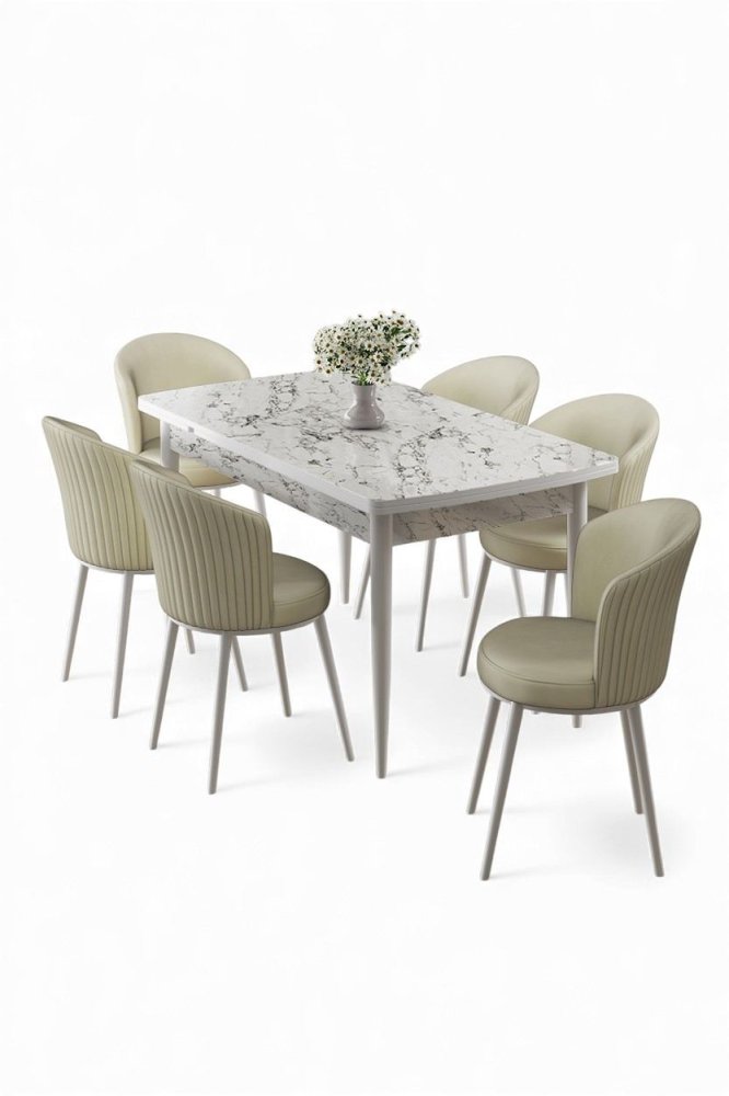 | Specifikacija | Rasklopivi trpezarijski sto i stolice (7 delova) Asfel White Marble Cream 100% MDF Metalne nogare Ram stolice: METAL Materijal: Mekana tkanina Trpezarijski sto: Širina: 130 cm Visina: 78 cm Dubina: 77 cm Otvoreni trpezarijski sto: Širina: 174 cm Visina: 78 cm Dubina: 77 cm Stolica: Širina: 45 cm Visina: 87 cm Dubina: 41 cm (6 komada) Visina sedišta: 49 cm 22 DNS pena za leđa / 28 DNS pena za sedenje Broj pakovanja: 3 138 x 86 x 20 cm / 31 kg (1 komad) 85 x 59 x 50 cm / 24 kg (1 komad) 62 x 48 x 56 cm / 12 kg (1 komad) |