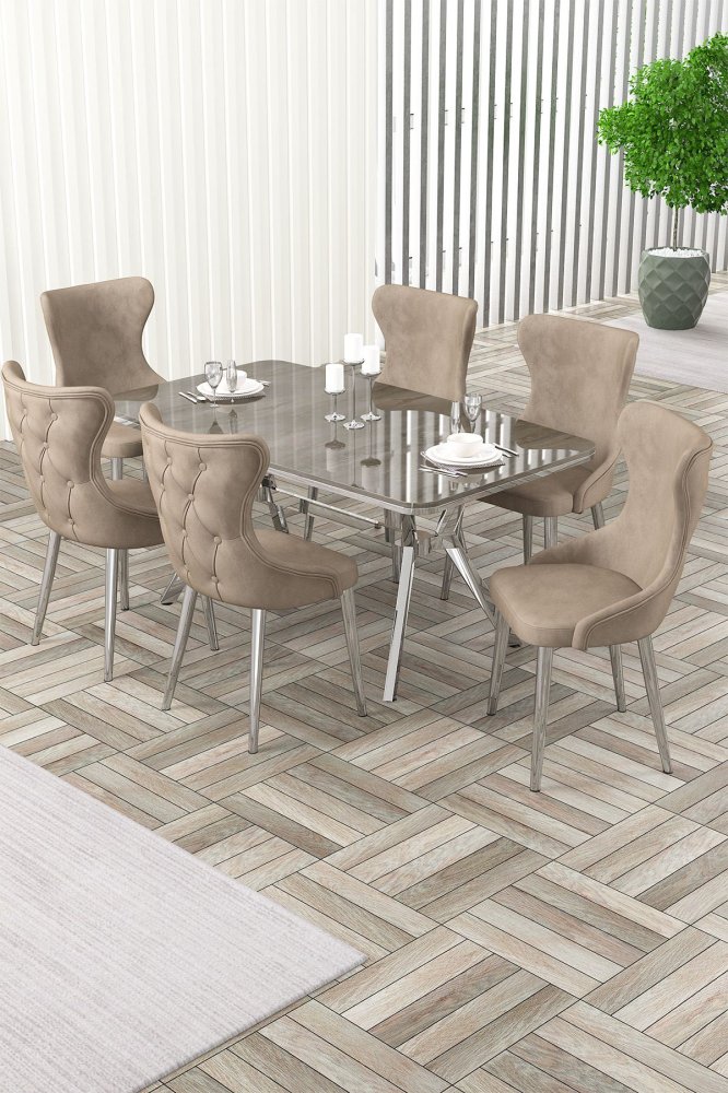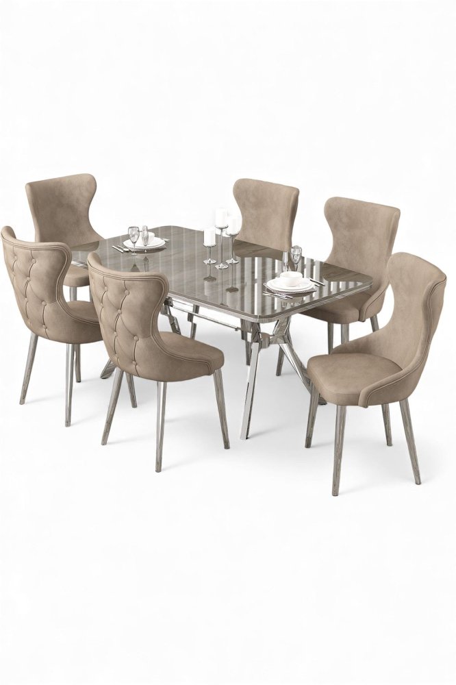| Specifikacija | Rasklopivi trpezarijski sto i stolice (7 delova) Esla Anthracite Chrome Cappuccino 100% LAKOVANI PANEL Metalne nogare Okvir stolice: ŠPERPLOČA / METAL Materijal: Mekana tkanina Trpezarijski sto: Širina: 160 cm Visina: 75 cm Dubina: 90 cm (1 komad) Stolica: Širina: 45 cm Visina: 91 cm Dubina: 46 cm (6 komada) Visina sedišta: 47 cm 22 DNS pena za leđa / 28 DNS pena za sedenje Broj pakovanja: 5 169 x 99,5 x 10,5 cm / 25,76 kg (1 komad) 37,5 x 80 x 19 cm / 7,58 kg (1 komad) 85 x 59 x 50 cm / 22 kg (1 komad) 62 x 48 x 56 cm / 12 kg (1 komad) 62 x 48 x 56 cm / 14 kg (1 komad) |