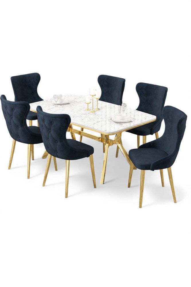 | Specifikacija | Rasklopivi trpezarijski sto i stolice (7 delova) Esla White Marble Gold Anthracite 100% LAKOVANI PANEL Metalne nogare Okvir stolice: ŠPERPLOČA / METAL Materijal: Mekana tkanina Trpezarijski sto: Širina: 160 cm Visina: 75 cm Dubina: 90 cm (1 komad) Stolica: Širina: 45 cm Visina: 91 cm Dubina: 46 cm (6 komada) Visina sedišta: 47 cm 22 DNS pena za leđa / 28 DNS pena za sedenje Broj pakovanja: 5 169 x 99,5 x 10,5 cm / 25,76 kg (1 komad) 37,5 x 80 x 19 cm / 7,58 kg (1 komad) 85 x 59 x 50 cm / 22 kg (1 komad) 62 x 48 x 56 cm / 12 kg (1 komad) 62 x 48 x 56 cm / 14 kg (1 komad) |