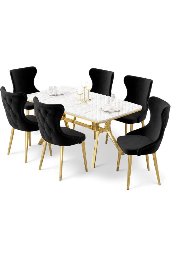 | Specifikacija | Rasklopivi trpezarijski sto i stolice (7 delova) Esla White Marble Gold Black 100% LAKOVANI PANEL Metalne nogare Okvir stolice: ŠPERPLOČA / METAL Materijal: Mekana tkanina Trpezarijski sto: Širina: 160 cm Visina: 75 cm Dubina: 90 cm (1 komad) Stolica: Širina: 45 cm Visina: 91 cm Dubina: 46 cm (6 komada) Visina sedišta: 47 cm 22 DNS pena za leđa / 28 DNS pena za sedenje Broj pakovanja: 5 169 x 99,5 x 10,5 cm / 25,76 kg (1 komad) 37,5 x 80 x 19 cm / 7,58 kg (1 komad) 85 x 59 x 50 cm / 22 kg (1 komad) 62 x 48 x 56 cm / 12 kg (1 komad) 62 x 48 x 56 cm / 14 kg (1 komad) |