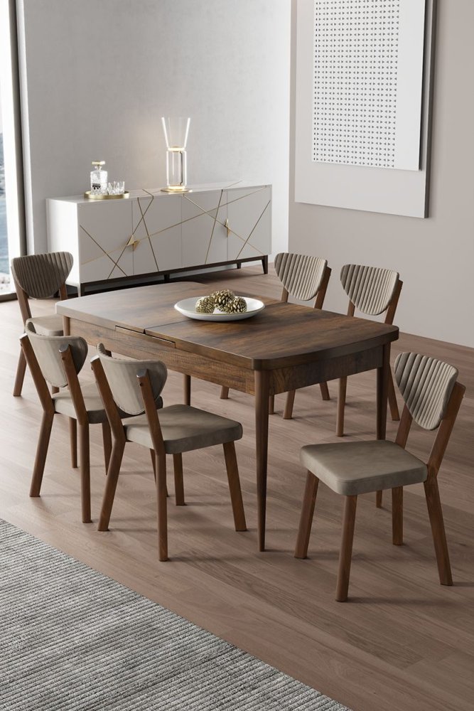 | Specifikacija | Rasklopivi trpezarijski sto i stolice (7 delova) Exve Baroque Cappuccino 100% Iverica sa melaminskim premazom Metalne nogare Okvir stolice: Šperploča / Metal Materijal: Mekana tkanina Trpezarijski sto: Širina: 132 cm Visina: 78 cm Dubina: 80 cm (1 komad) Otvoreni trpezarijski sto: Širina: 170 cm Visina: 78 cm Dubina: 80 cm Stolica: Širina: 45 cm Visina: 86 cm Dubina: 46 cm (7 komada) Visina sedišta: 48 cm 22 DNS pena za leđa / 28 DNS pena za sedenje Broj pakovanja: 2 85 x 136 x 20 cm / 30,42 kg (1 komad) 101 x 76 x 26 cm / 30 kg (1 komad) |