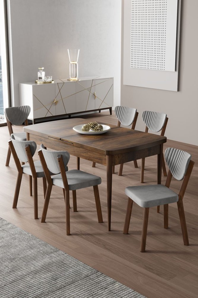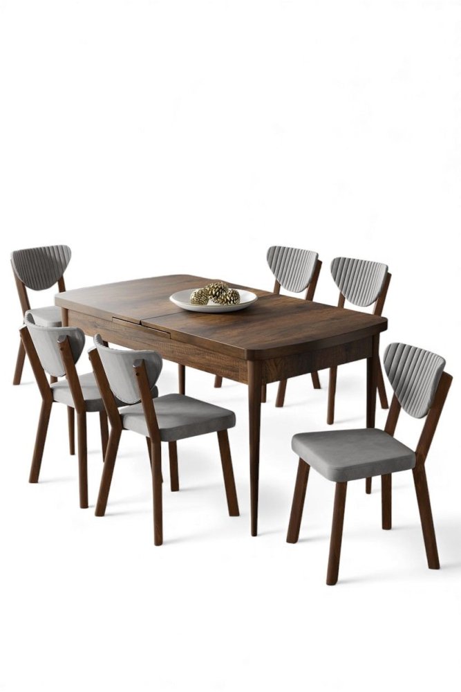 | Specifikacija | Rasklopivi trpezarijski sto i stolice (7 delova) Exve Baroque Grey 100% Iverica sa melaminskim premazom Metalne nogare Okvir stolice: Šperploča / Metal Materijal: Mekana tkanina Trpezarijski sto: Širina: 132 cm Visina: 78 cm Dubina: 80 cm (1 komad) Otvoreni trpezarijski sto: Širina: 170 cm Visina: 78 cm Dubina: 80 cm Stolica: Širina: 45 cm Visina: 86 cm Dubina: 46 cm (7 komada) Visina sedišta: 48 cm 22 DNS pena za leđa / 28 DNS pena za sedenje Broj pakovanja: 2 85 x 136 x 20 cm / 30,42 kg (1 komad) 101 x 76 x 26 cm / 30 kg (1 komad) |
