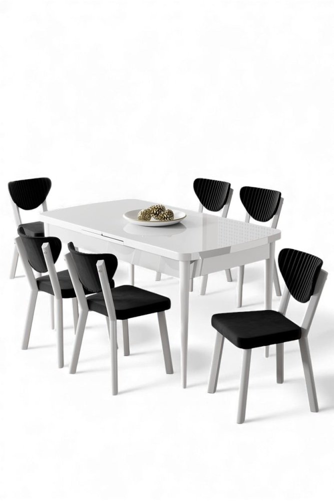 | Specifikacija | Rasklopivi trpezarijski sto i stolice (7 delova) Exve White Black 100% Iverica sa melaminskim premazom Metalne nogare Okvir stolice: Šperploča / Metal Materijal: Mekana tkanina Trpezarijski sto: Širina: 132 cm Visina: 78 cm Dubina: 80 cm (1 komad) Otvoreni trpezarijski sto: Širina: 170 cm Visina: 78 cm Dubina: 80 cm Stolica: Širina: 45 cm Visina: 86 cm Dubina: 46 cm (7 komada) Visina sedišta: 48 cm 22 DNS pena za leđa / 28 DNS pena za sedenje Broj pakovanja: 2 85 x 136 x 20 cm / 30,42 kg (1 komad) 101 x 76 x 26 cm / 30 kg (1 komad) |
