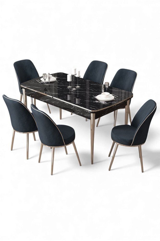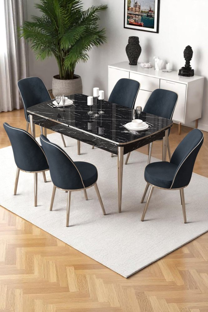| Specifikacija | Rasklopivi trpezarijski sto i stolice (7 delova) Nira Black Marble Chrome Anthracite 100% MDF Metalne nogare Okvir stolice: METAL Materijal: Mekana tkanina Trpezarijski sto: Širina: 114 cm Visina: 78 cm Dubina: 78 cm (1 komad) Otvoreni trpezarijski sto: Širina: 144 cm Visina: 78 cm Dubina: 70 cm Stolica: Širina: 45 cm Visina: 91 cm Dubina: 42 cm (6 komada) Visina sedišta: 47 cm 22 DNS pena za leđa / 28 DNS pena za sedenje Broj pakovanja: 3 118,5 x 77 x 20 cm / 25,76 kg (1 komad) 85 x 59 x 50 cm / 24 kg (1 komad) 62 x 48 x 56 cm / 12,5 kg (1 komad) |