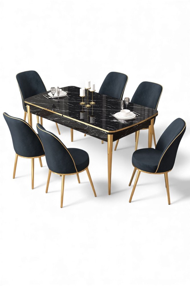 | Specifikacija | Rasklopivi trpezarijski sto i stolice (7 delova) Nira Black Marble Gold Anthracite 100% MDF Metalne nogare Okvir stolice: METAL Materijal: Mekana tkanina Trpezarijski sto: Širina: 114 cm Visina: 78 cm Dubina: 78 cm (1 komad) Otvoreni trpezarijski sto: Širina: 144 cm Visina: 78 cm Dubina: 70 cm Stolica: Širina: 45 cm Visina: 91 cm Dubina: 42 cm (6 komada) Visina sedišta: 47 cm 22 DNS pena za leđa / 28 DNS pena za sedenje Broj pakovanja: 3 118,5 x 77 x 20 cm / 25,76 kg (1 komad) 85 x 59 x 50 cm / 24 kg (1 komad) 62 x 48 x 56 cm / 12,5 kg (1 komad) |