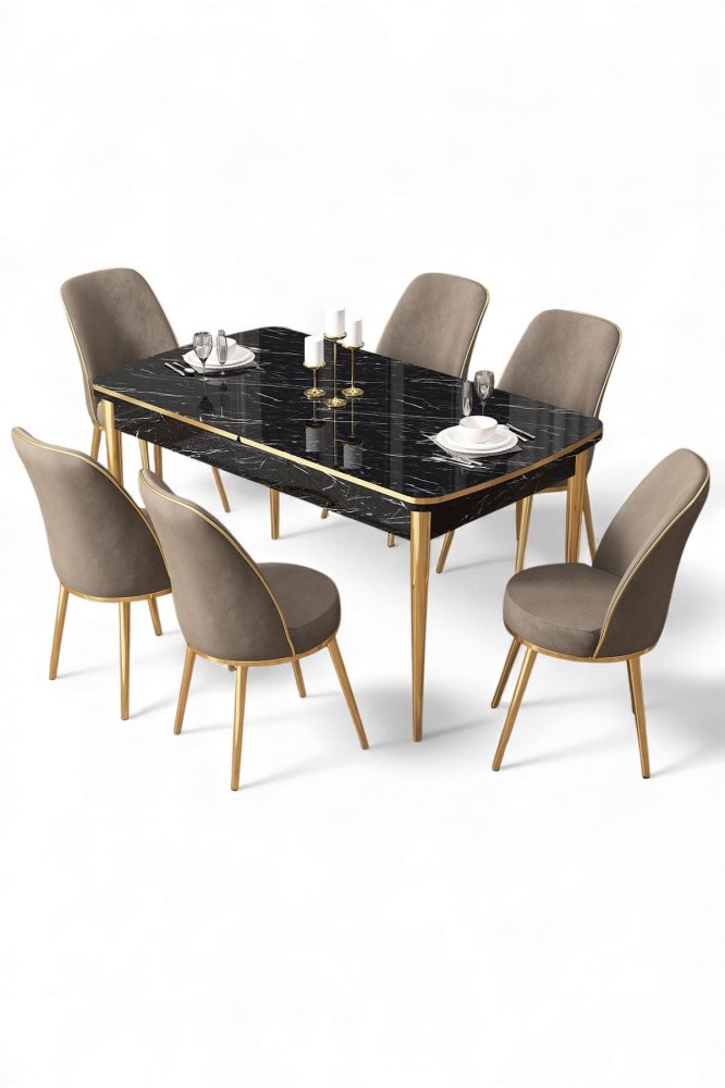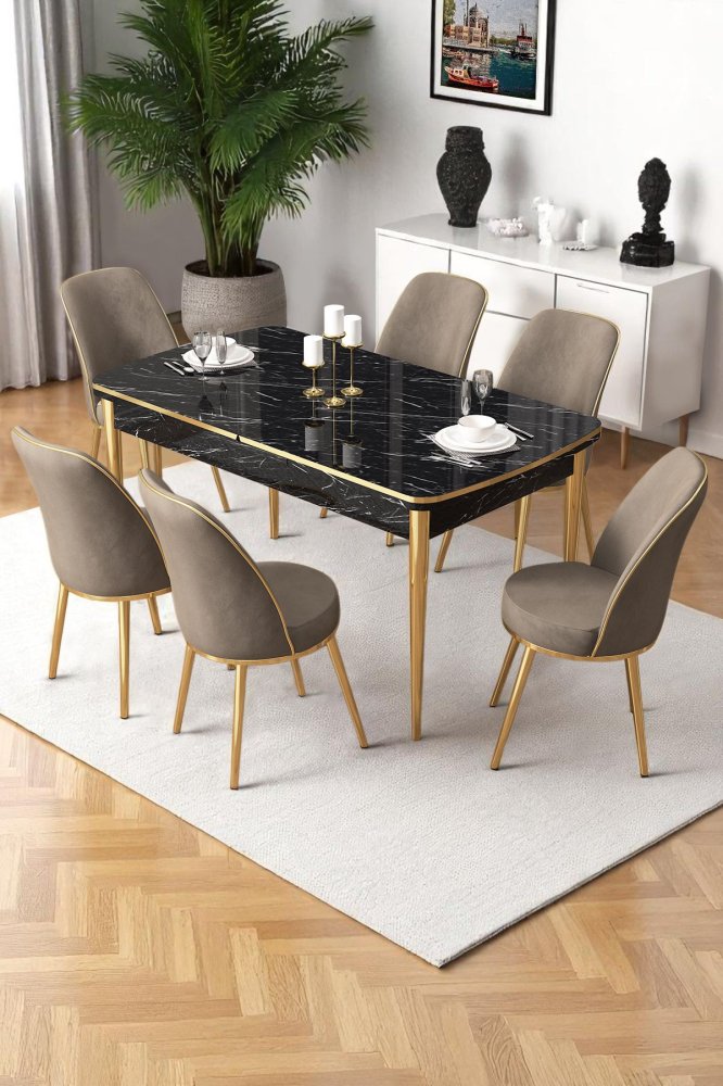 | Specifikacija | Rasklopivi trpezarijski sto i stolice (7 delova) Nira Black Marble Gold Cappuccino 100% MDF Metalne nogare Okvir stolice: METAL Materijal: Mekana tkanina Trpezarijski sto: Širina: 114 cm Visina: 78 cm Dubina: 78 cm (1 komad) Otvoreni trpezarijski sto: Širina: 144 cm Visina: 78 cm Dubina: 70 cm Stolica: Širina: 45 cm Visina: 91 cm Dubina: 42 cm (6 komada) Visina sedišta: 47 cm 22 DNS pena za leđa / 28 DNS pena za sedenje Broj pakovanja: 3 118,5 x 77 x 20 cm / 25,76 kg (1 komad) 85 x 59 x 50 cm / 24 kg (1 komad) 62 x 48 x 56 cm / 12,5 kg (1 komad) |