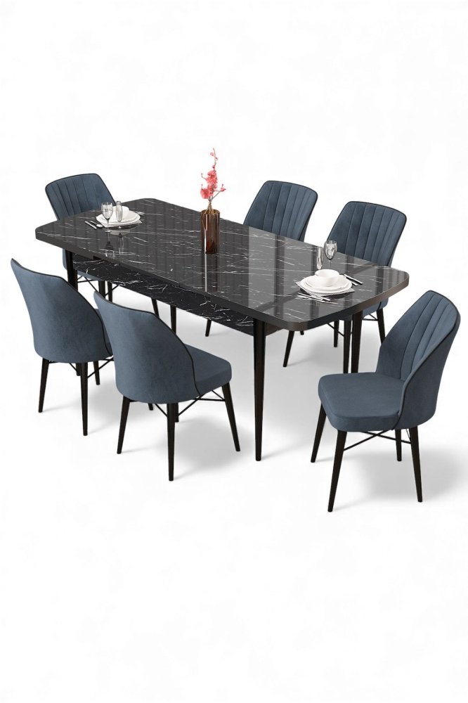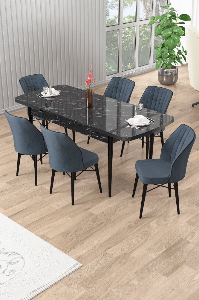 | Specifikacija | Rasklopivi trpezarijski sto i stolice (7 delova) Uzi Black Marble Anthracite 100% Iverica sa melaminskim premazom Drvene nogare Okvir stolice: Metal Materijal: Mekana tkanina Trpezarijski sto: Širina: 132 cm Visina: 78 cm Dubina: 80 cm (1 komad) Otvoreni trpezarijski sto: Širina: 170 cm Visina: 78 cm Dubina: 80 cm Stolica: Širina: 45 cm Visina: 93 cm Dubina: 42 cm (6 komada) Visina sedišta: 48 cm 22 DNS pena za leđa / 28 DNS pena za sedenje Broj pakovanja: 3 85 x 136 x 20 cm / 31,18 kg (1 komad) 89 x 45 x 61 cm / 26 kg (1 komad) 36 x 37 x 45 cm / 12 kg (1 komad) |