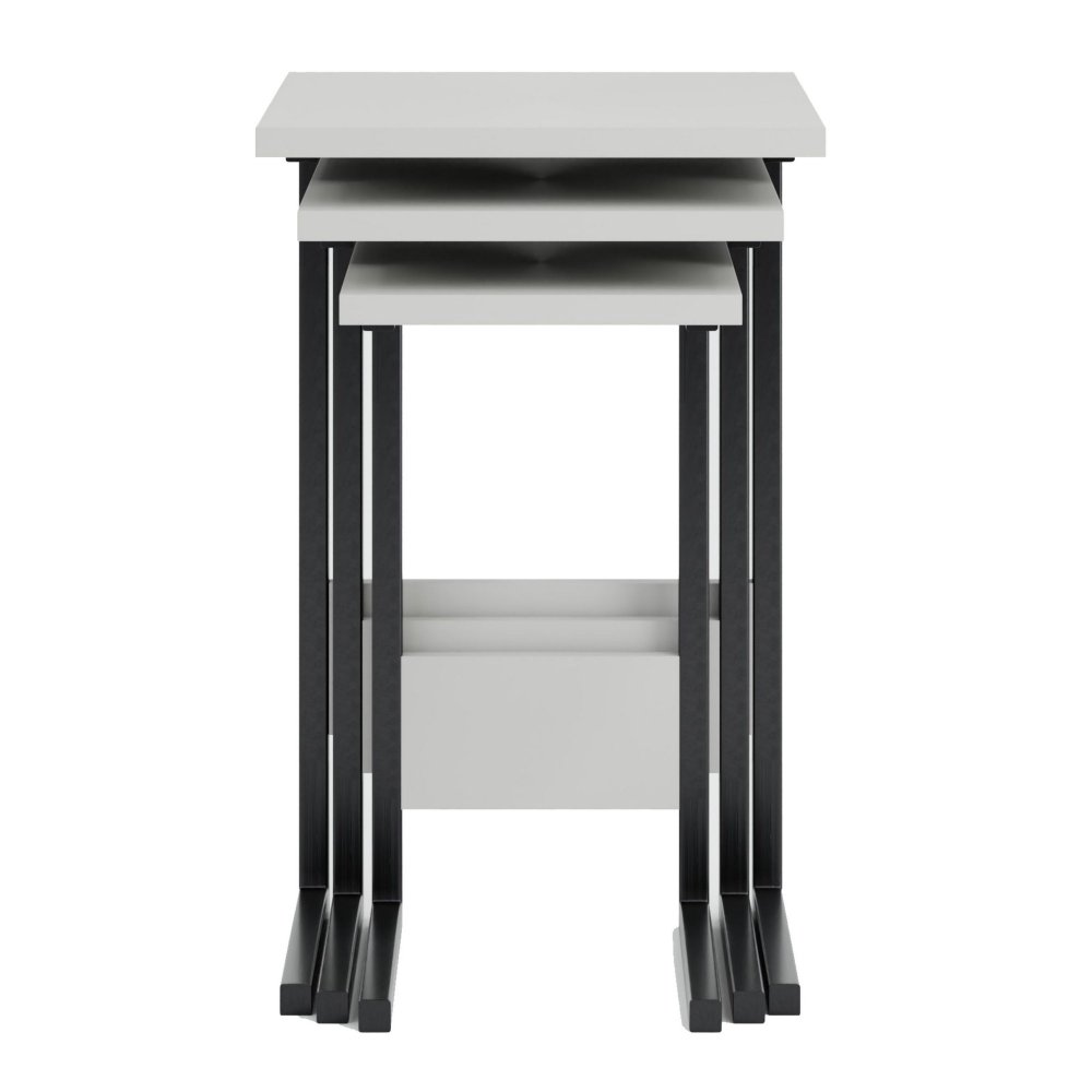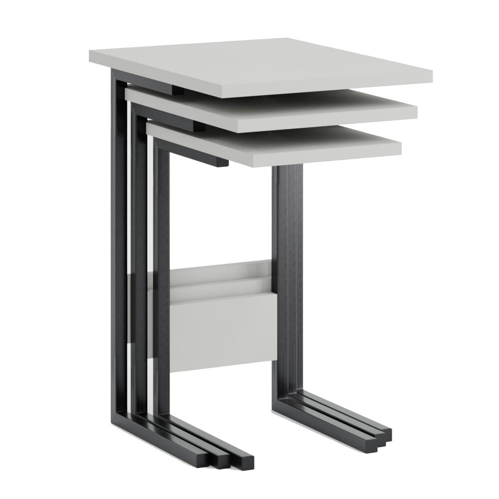 Specifikacija | Set stočića Materijal: 100% Iverica presvučena melaminom Debljina iverice: 18 mm Materijal nogara: Metal Profil nogara: 20 x 20 mm Dimenzije većeg stola: Širina: 35 cm Visina: 55 cm Dubina: 44 cm Dimenzije srednjeg stola: Širina: 29 cm Visina: 50 cm Dubina: 40 cm Dimenzije manjeg stola: Širina: 23 cm Visina: 45 cm Dubina: 36 cm |