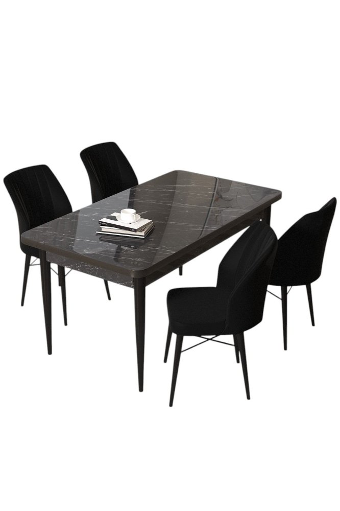 HANAH HOME Set Trpezarijski sto i 4 stolice Arp Black Marble Black
