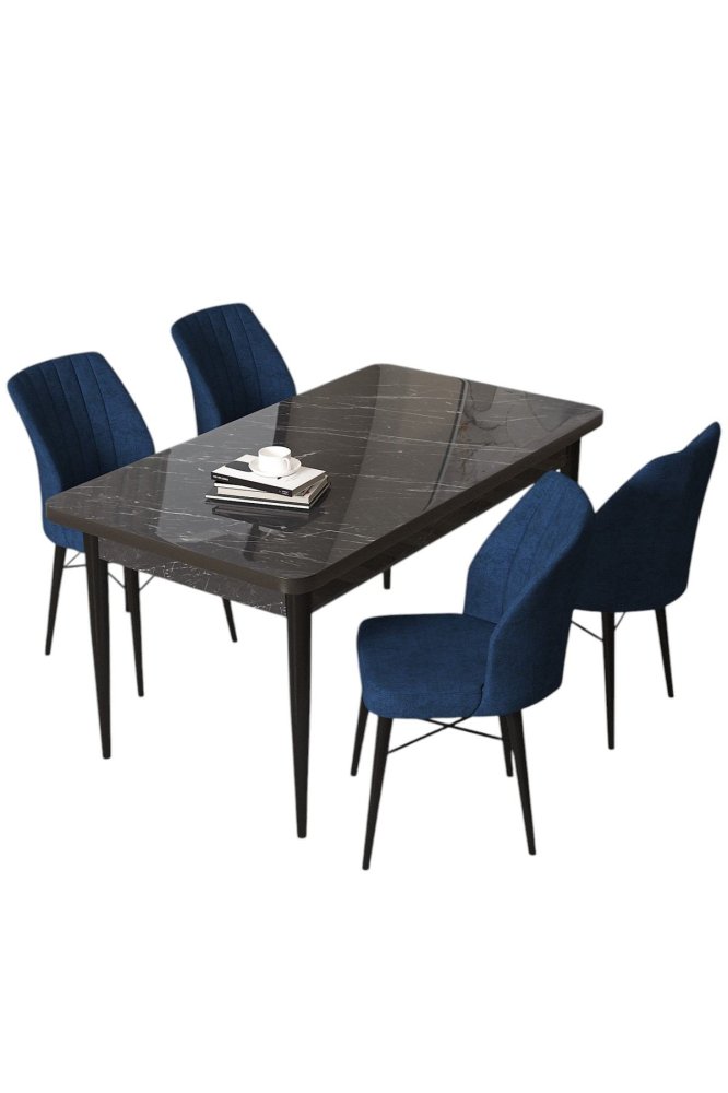 HANAH HOME Set Trpezarijski sto i 4 stolice Arp Black Marble Navy Blue