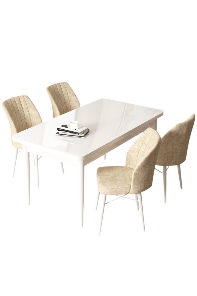 HANAH HOME Set Trpezarijski sto i 4 stolice Arp White Cream