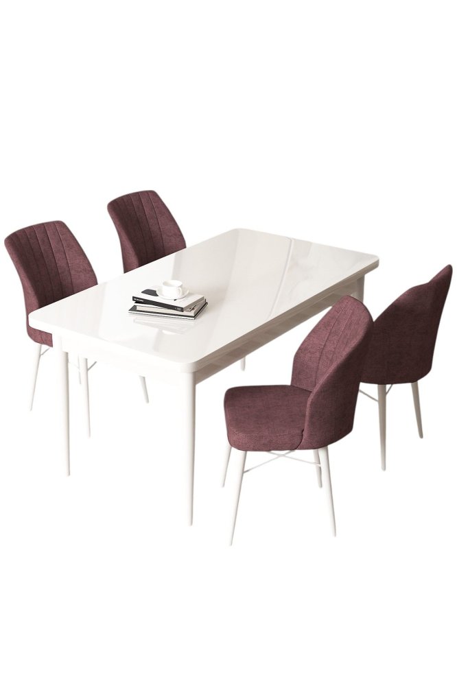 HANAH HOME Set Trpezarijski sto i 4 stolice Arp White Dusty Rose