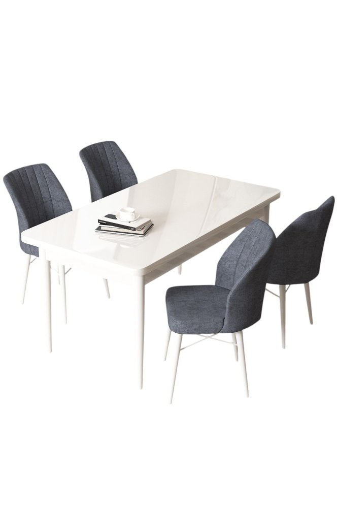 HANAH HOME Set Trpezarijski sto i 4 stolice Arp White Fume