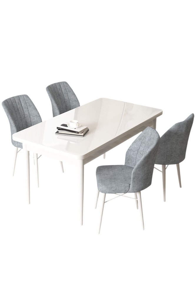 HANAH HOME Set Trpezarijski sto i 4 stolice Arp White Grey