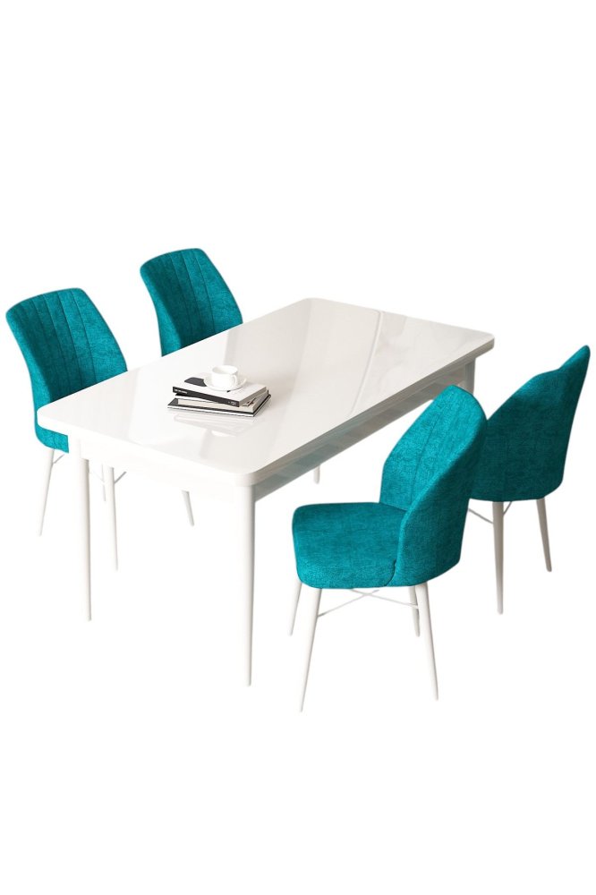 HANAH HOME Set Trpezarijski sto i 4 stolice Arp White Turquoise