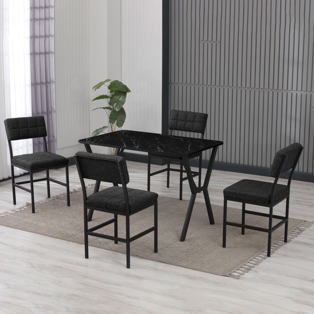HANAH HOME Set Trpezarijski sto i 4 stolice Dubai Anthracite Black