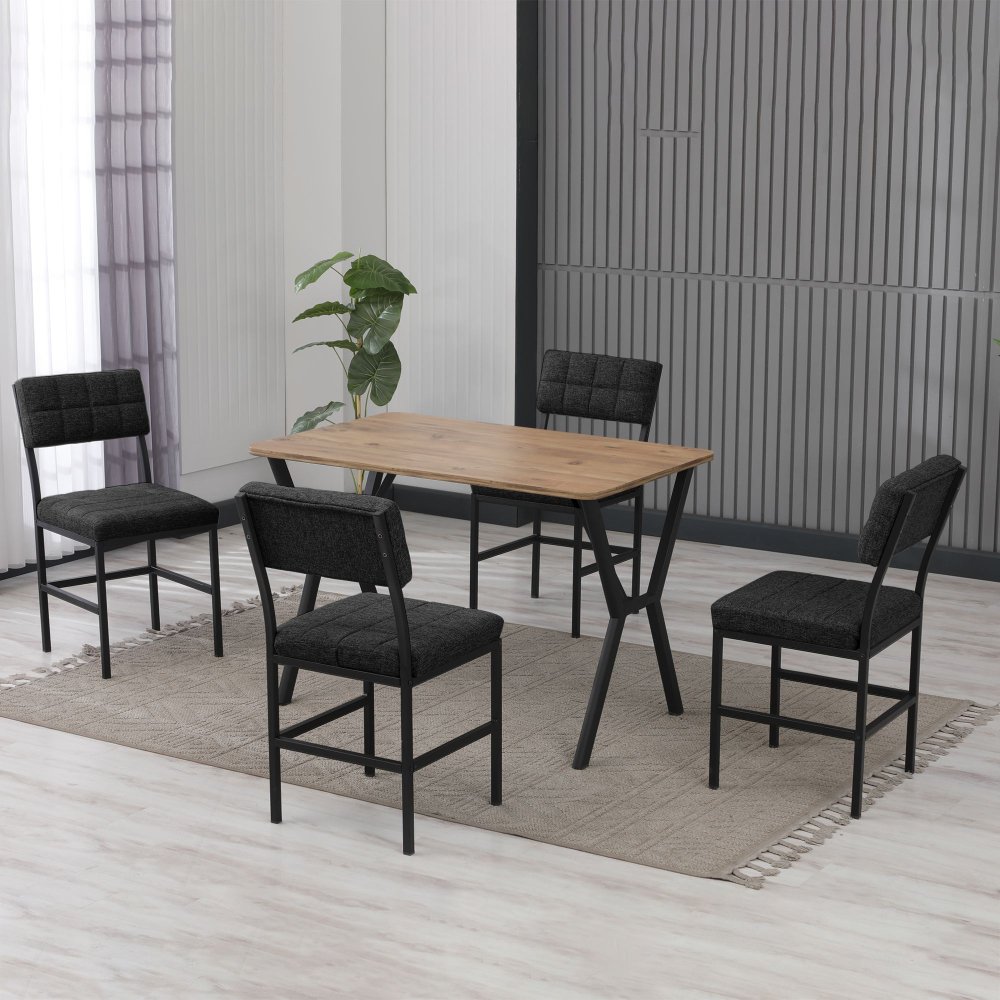 HANAH HOME Set Trpezarijski sto i 4 stolice Dubai Anthracite Walnut
