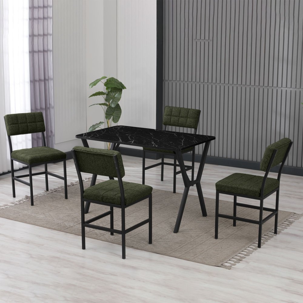 HANAH HOME Set Trpezarijski sto i 4 stolice Dubai Green Black