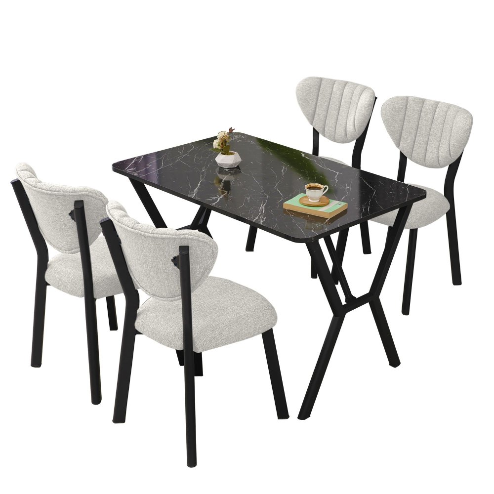 HANAH HOME Set Trpezarijski sto i 4 stolice Elma Cream Black