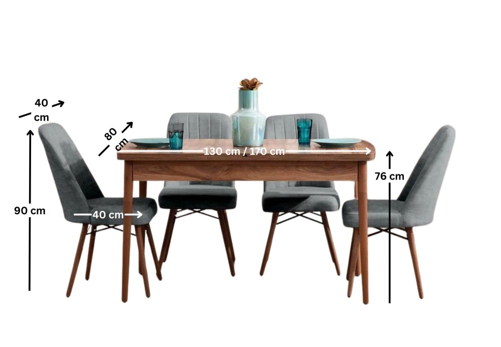 HANAH HOME Set Trpezarijski sto i 4 stolice Lidyana Grey