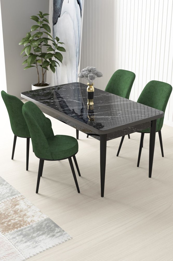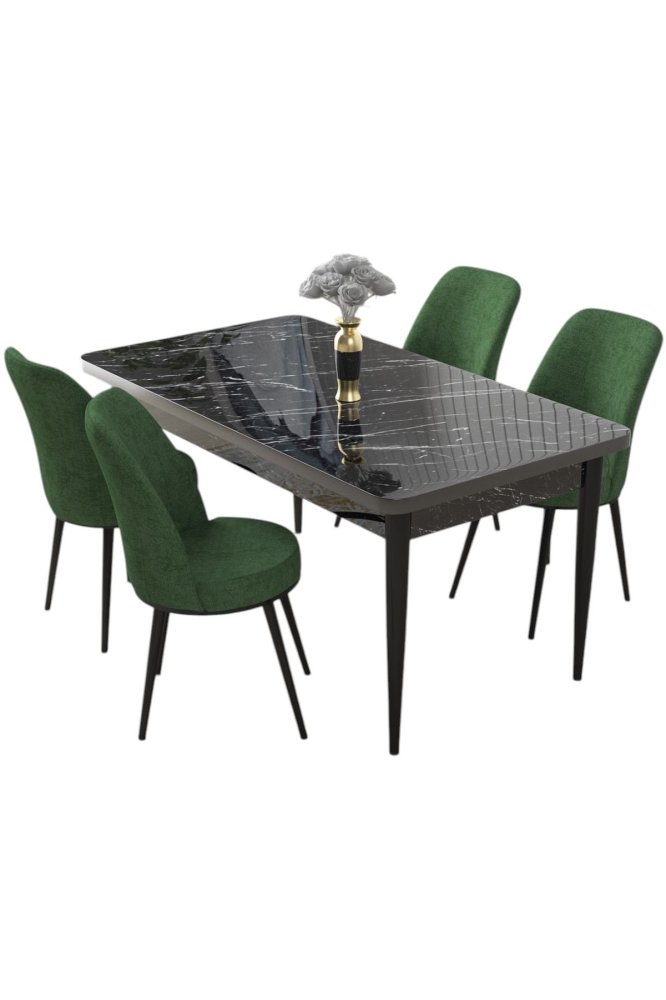 HANAH HOME Set Trpezarijski sto i 4 stolice Nil Black Marble Khaki