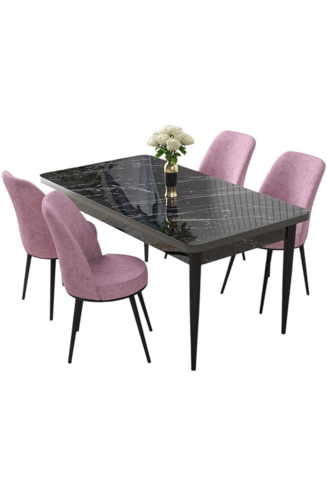 HANAH HOME Set Trpezarijski sto i 4 stolice Nil Black Marble Pink