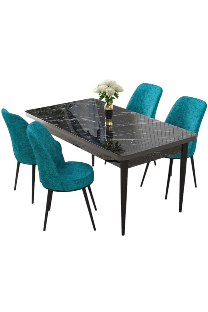 HANAH HOME Set Trpezarijski sto i 4 stolice Nil Black Marble Turquoise
