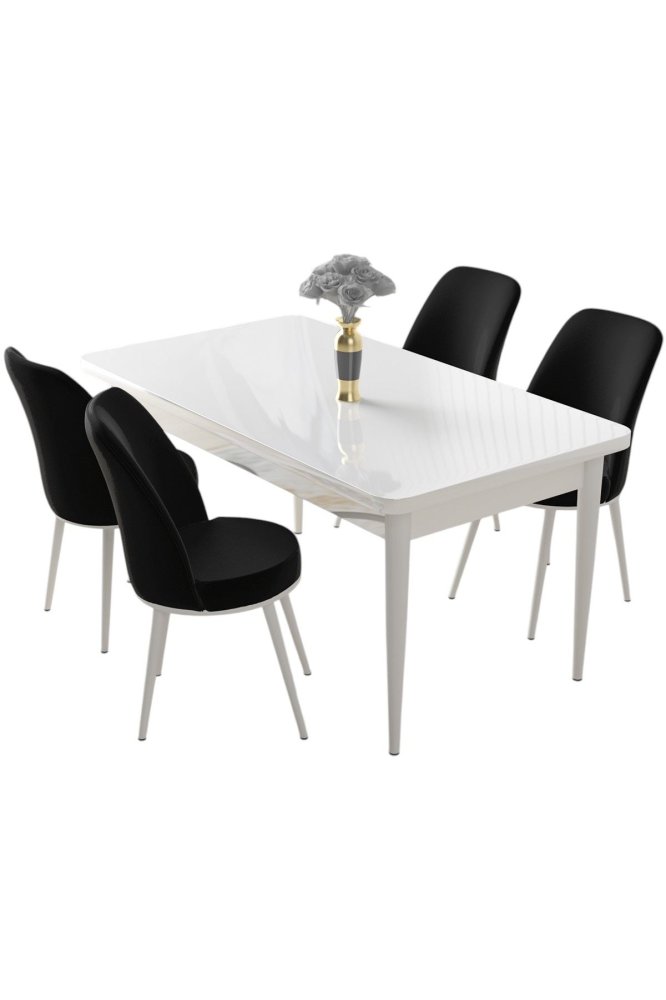 HANAH HOME Set Trpezarijski sto i 4 stolice Nil White Black