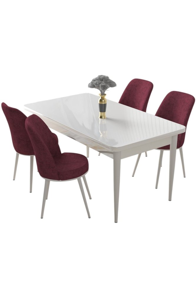 HANAH HOME Set Trpezarijski sto i 4 stolice Nil White Burgundy