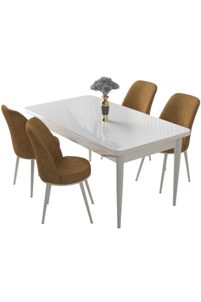 HANAH HOME Set Trpezarijski sto i 4 stolice Nil White Cappuccino