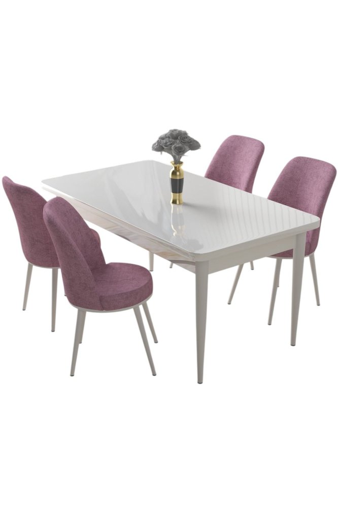 HANAH HOME Set Trpezarijski sto i 4 stolice Nil White Pink