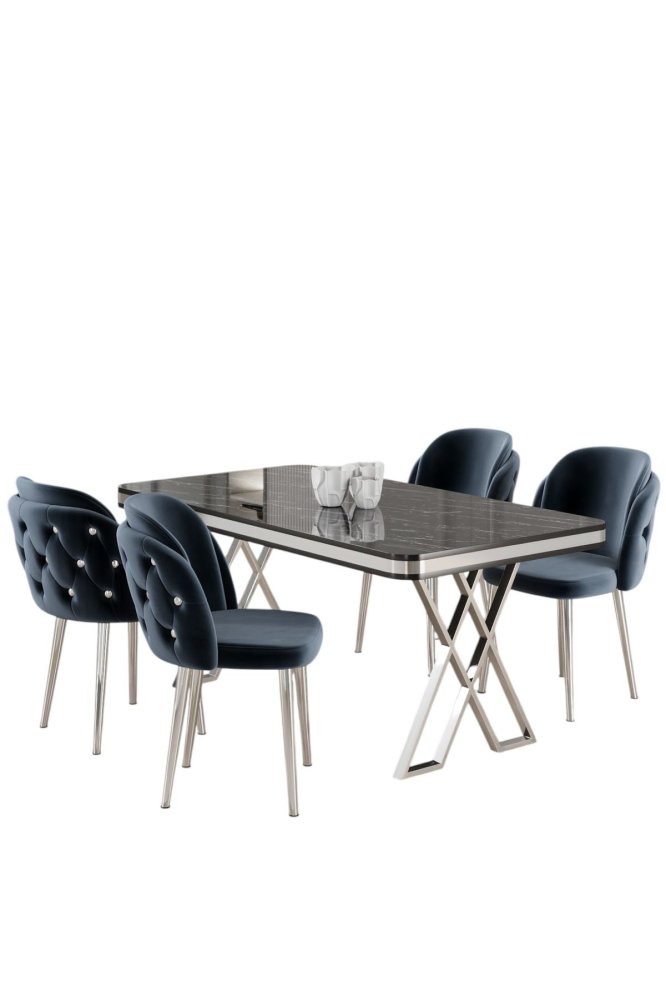 HANAH HOME Set Trpezarijski sto i 4 stolice Rigel Black Marble Chrome Anthracite