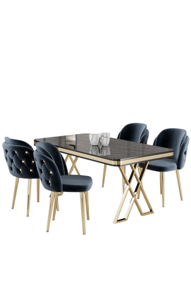 HANAH HOME Set Trpezarijski sto i 4 stolice Rigel Black Marble Gold Anthracite